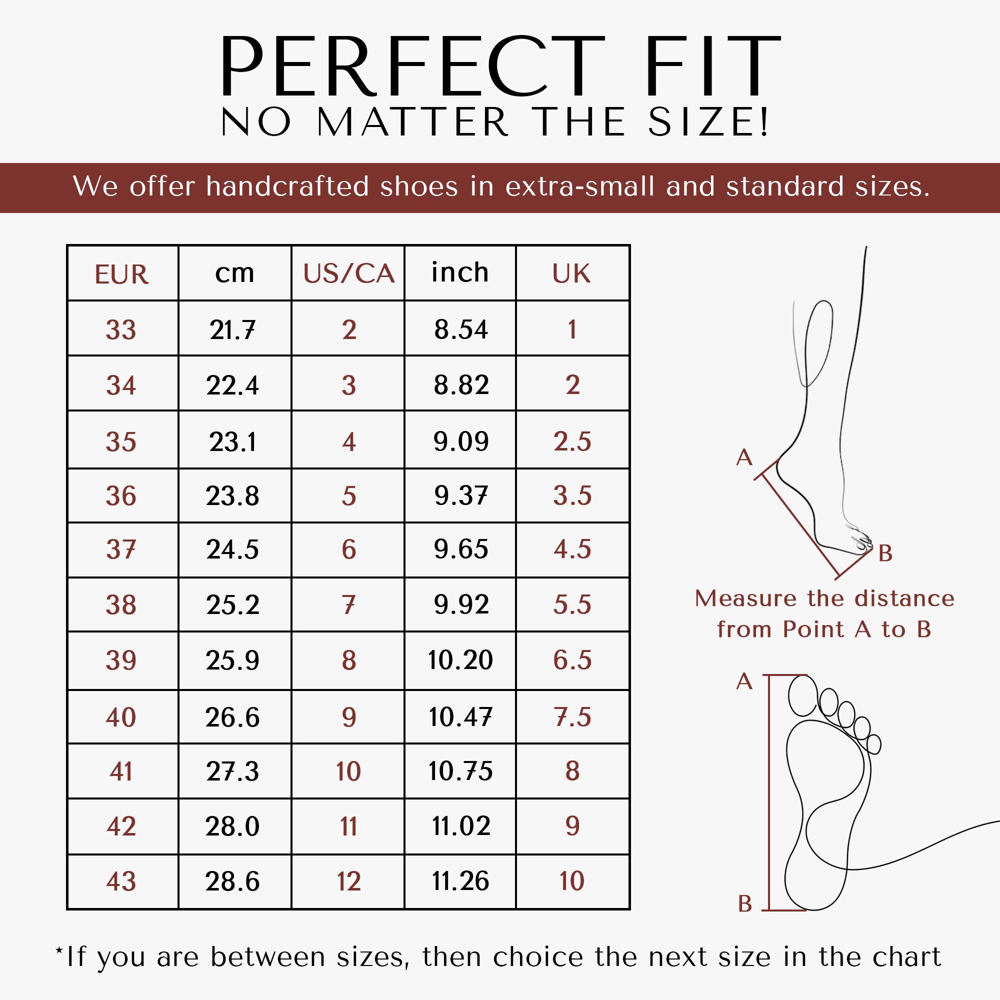 US/CA 7 – 9.92 inches ~ ~ EUR 38: 25.2 cm (UK 5.5)