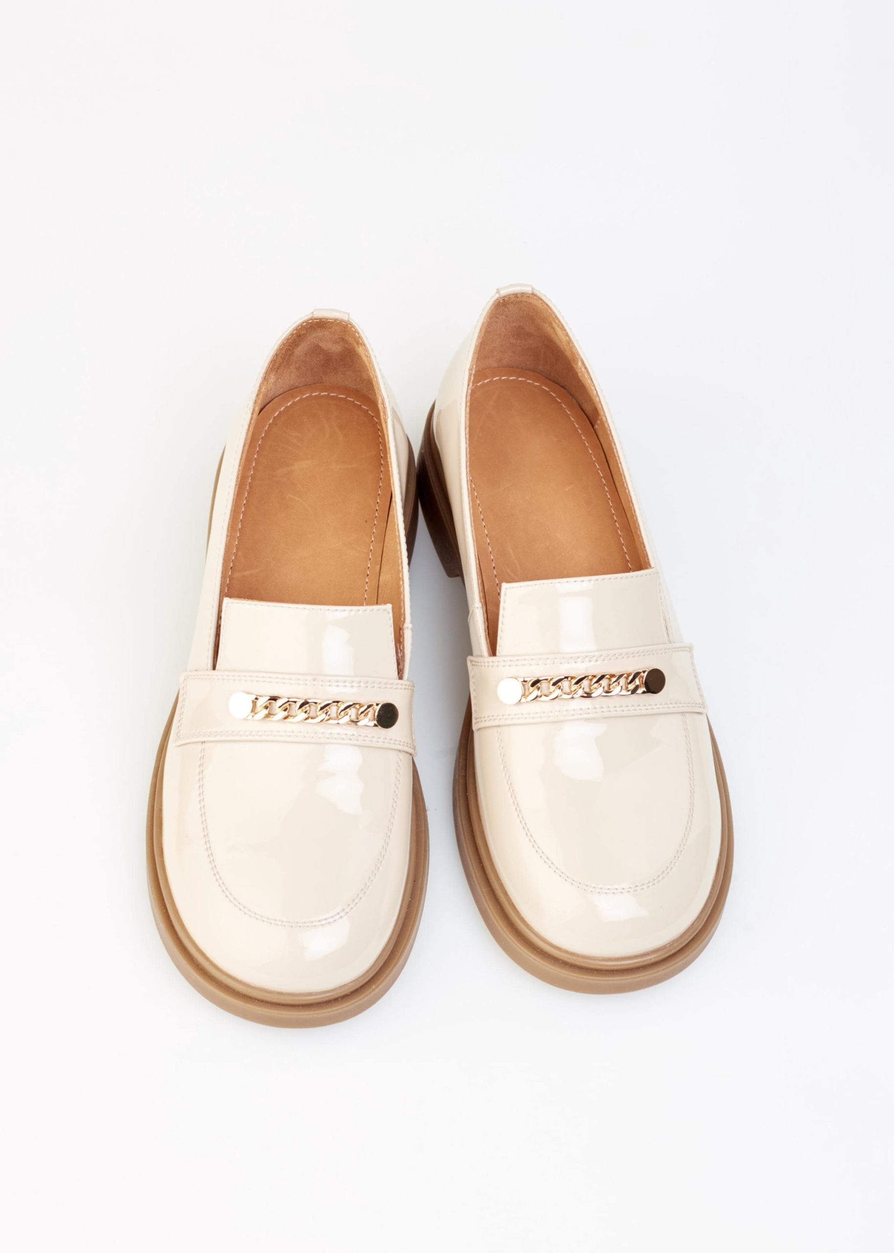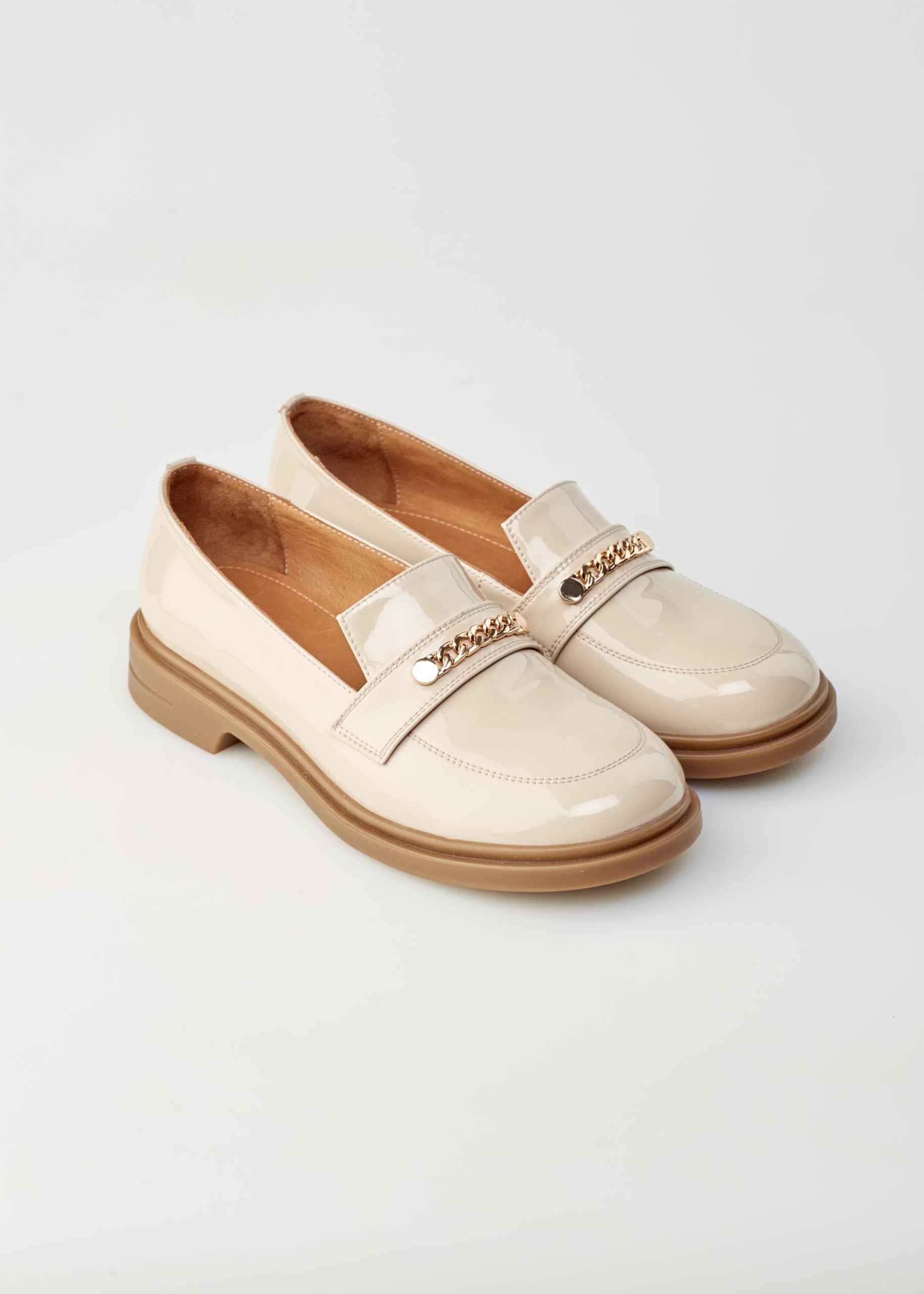 Check out our beige women’s patent leather loafers with chain decor that are perfect for your smart casual look! Designed for effortless summer wear, these loafers combine premium materials with a relaxed vibe for everyday elegance.