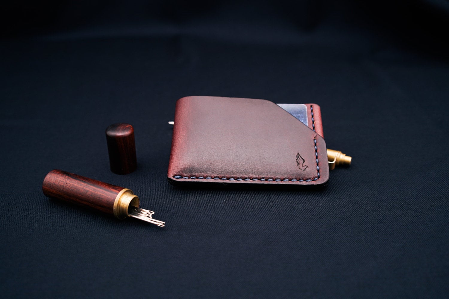 Hand stitched minimal credit card holder. Made from a single piece of 5oz premium full-grain leather from the Horween tannery.